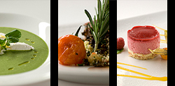 Himbeermousse-Törtchen mit Latte Macchiato-Schaum und Vanilleeis mit Pumpernickelkruste