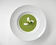 Kalte Wasserkresse-Suppe mit Ziegenfrischkäse und Zitronen-Olivenöl